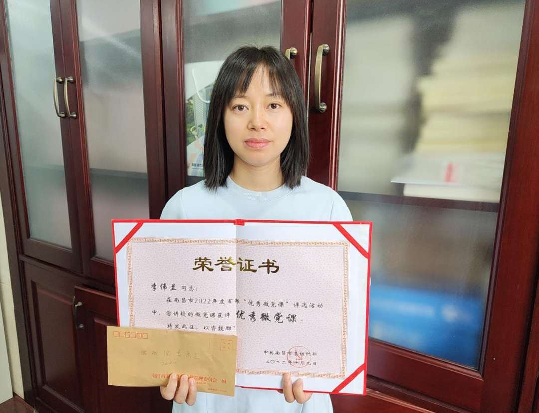 主讲人李伟兰获得市委组织部揭晓的声誉证书及奖金